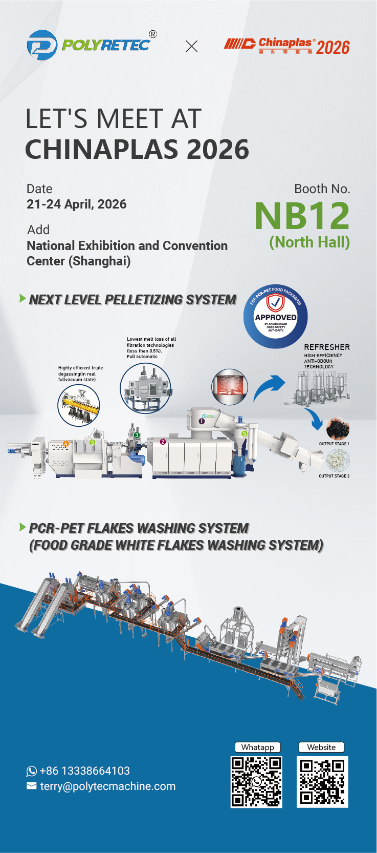 Stop by Booth NB12 and let’s talk about how advanced extrusion and recycling technologies can support your next stage of growth.